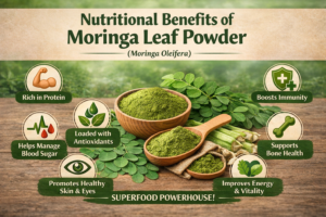Moringa leaf powder, derived from the dried leaves of the